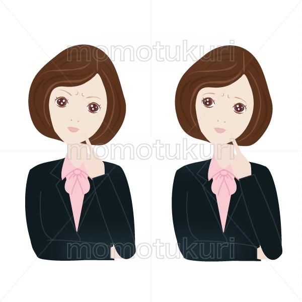 女性 OL 不機嫌 考える ? 怒り 困る はてな ビジネス(仕事) 上半身 イラスト  2つセット 3